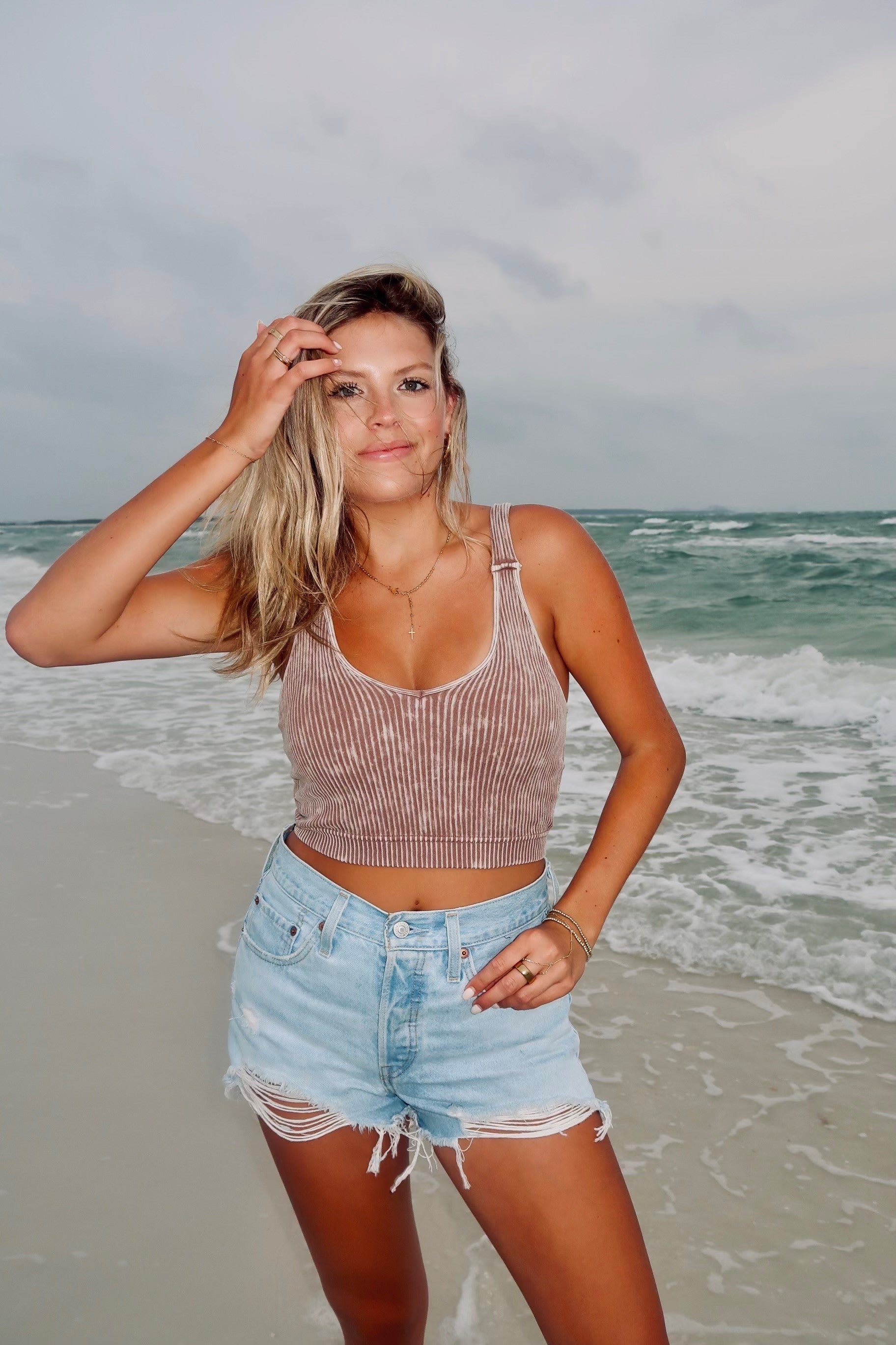 Say hello to your new best friend! Our Hattie Tanks are cropped with a mineral wash finish, ribbed look and are padded for support & lift. They are irresistibly soft on the inside too!!
