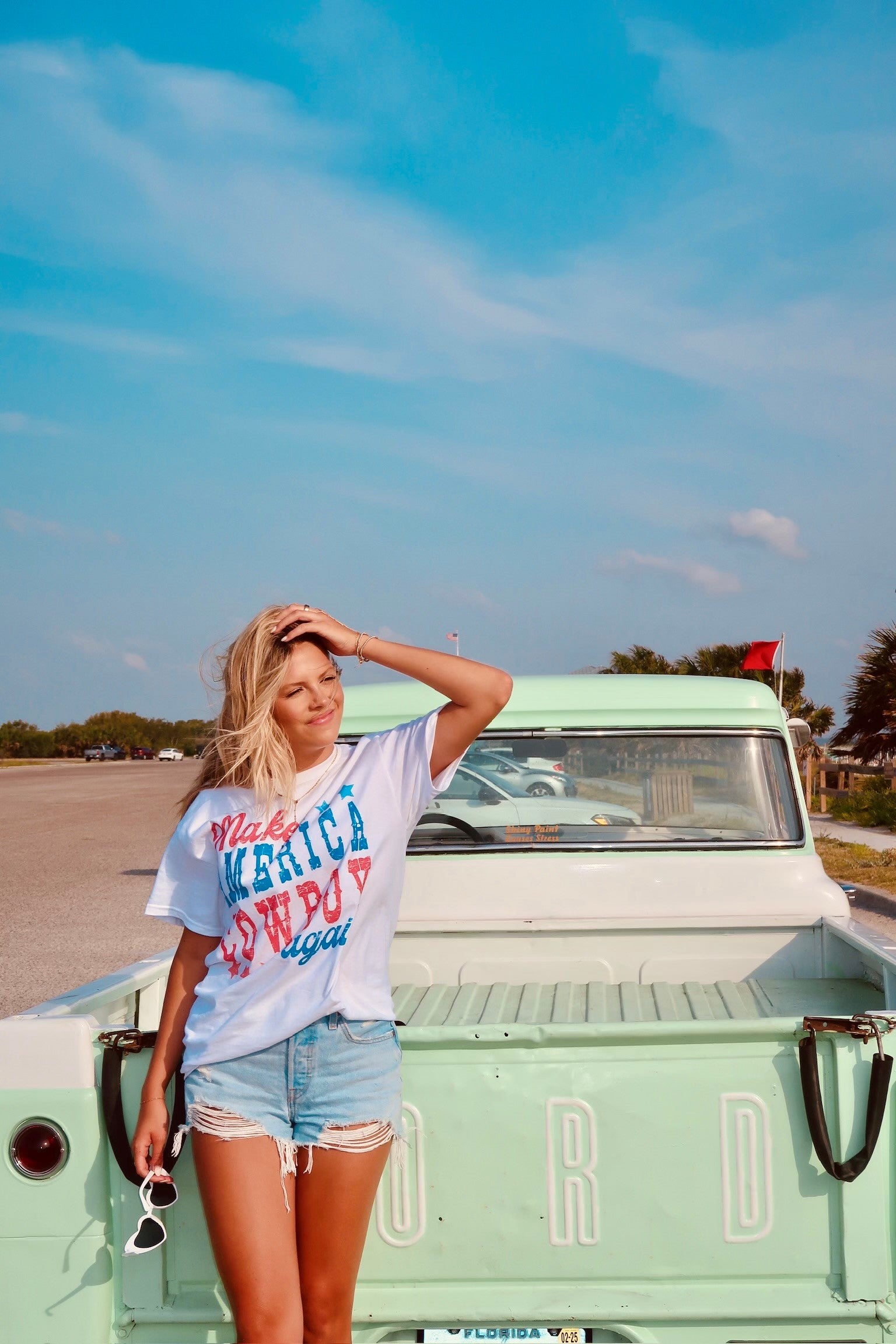 Calling all cowboy lovers! Who doesn't need more cowboys! Our washed out Make America Cowboy Graphic Tee is a great addition to your collection. It's a crewneck style with an oversized fit. There are endless ways to style these graphic tees. Perfect for this summer's festivities!